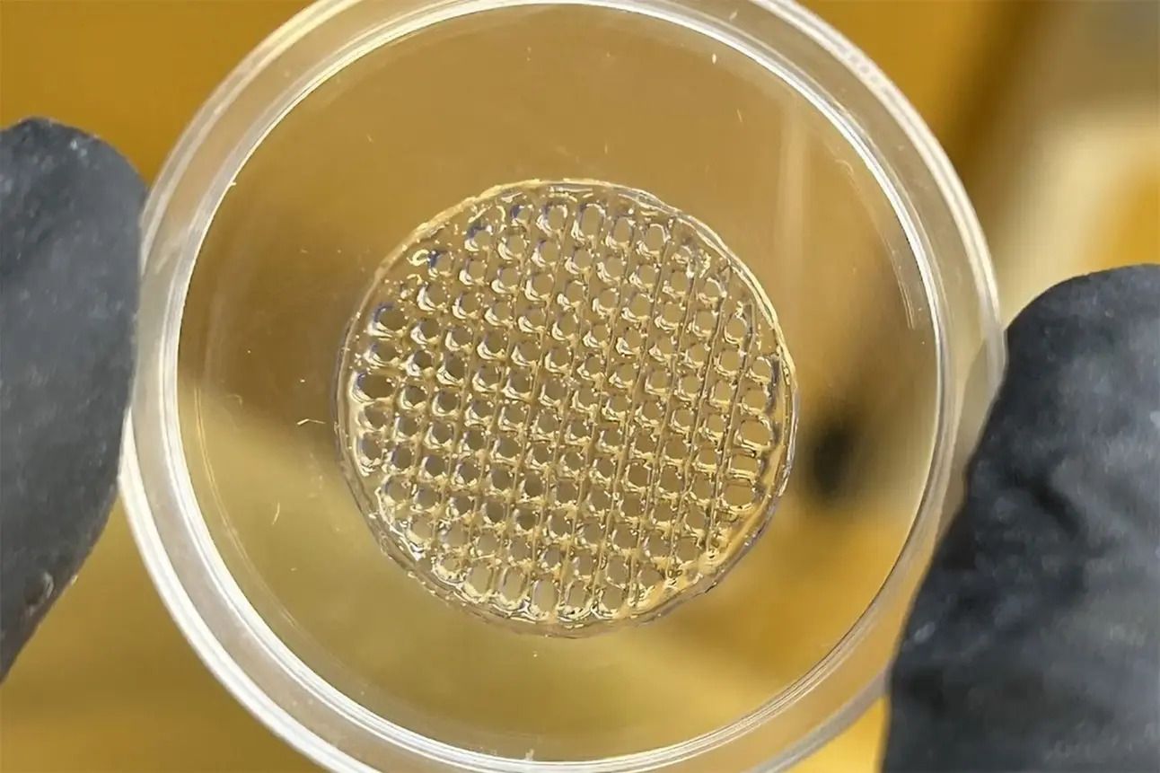 A small 3D-printed structure made of optimized hydrogel, which could soon be used as a skin imitation to test cosmetics. Manisha Sonthalia / Vellore Institute of Technology